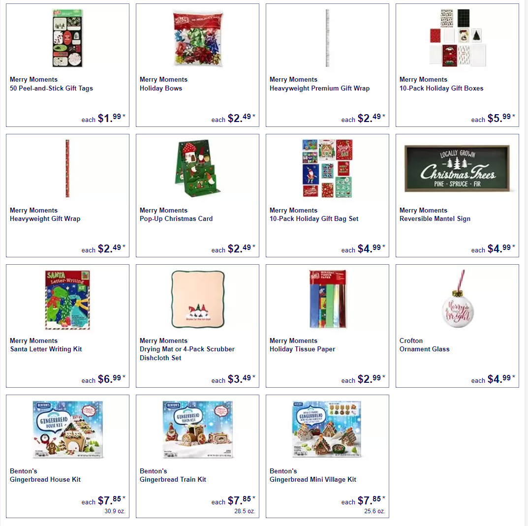 Even if you have yet to get those Christmas gifts, stock up on the wrapping paper this week. The aisle is filled with holiday wrapping paper, gift boxes, bows, and more. There are 2 different types of wrapping paper offered this week. Both are $2.49 and have grid lines for easy cutting but the size, patterns, and the paper vary.