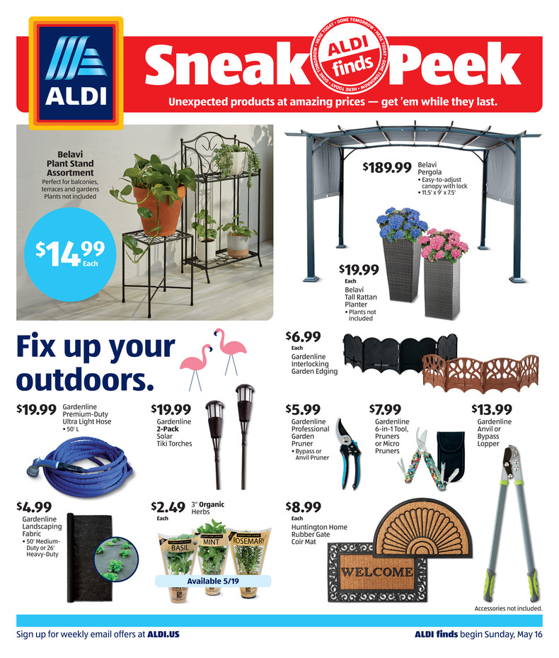 Here is the latest Aldi Finds Sneak Peek! Prices are valid starting Sunday, May 16, unless noted in the flyer. Keep in mind some stores start their sales on Wednesdays. Happy Shopping, Many Savings!