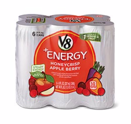 | V8 Fusion+ Energy | $3.98 | $3.99 | $3.98 | $4.79 | ----- | Size & Price Per Unit | 6, 8 oz., $0.663 ea./$0.082 per oz. | 6, 8 oz., $0.665 ea./$0.083 per oz. | 6, 8 oz., $0.663 ea./$0.082 per oz. | 6, 8 oz., $0.798 ea./$0.0.99 per oz. | -----. |