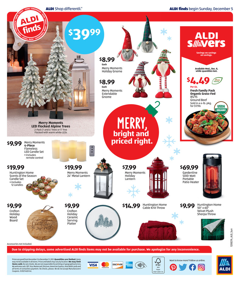 Here is the latest Aldi Finds Sneak Peek. Sales begin on either Sunday, December 5, or Wednesday, December 8. Again, this flyer is filled with lots of holiday gift giving and decorating items.