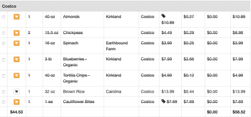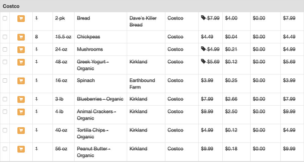 | Product | Costco Price | Size | Price at Other Store | Size | Overall Savings |
